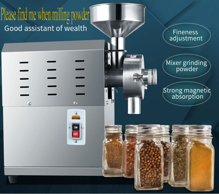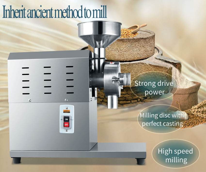 Based on the successful sale experience of type 860 mill machine in the market, type 812 small stainless steel mill machine is designed which specialized in milling whole grains. The volume of type 812 is smaller than one of type 860 .This type 812 with mill blade diameter 120mm equips with 1.5kw sheer copper motor professionally customized by the factory.This motor of type 812 has strong drive power and the yield may reach 10-30 kg/h as well.Also,this type 812 can mill kinds of grains,TCM herbs etc materials into uniform powder dust with 50-200 mesh.It can meet the requirements of most of users which is an ideal mill machine for kinds of mill houses and supermarket mill powder!