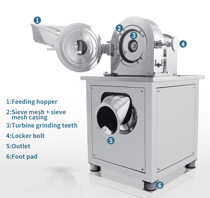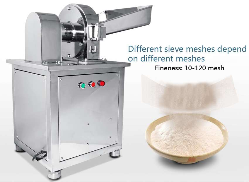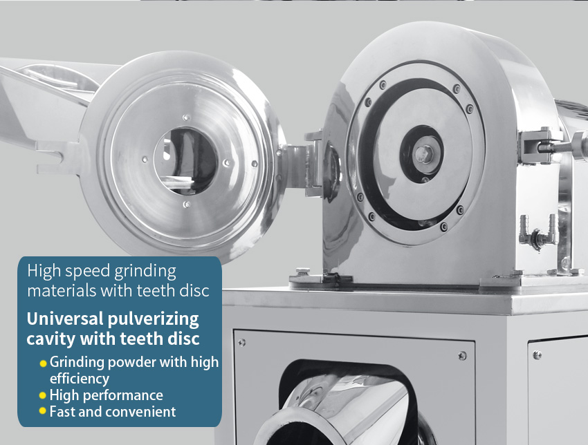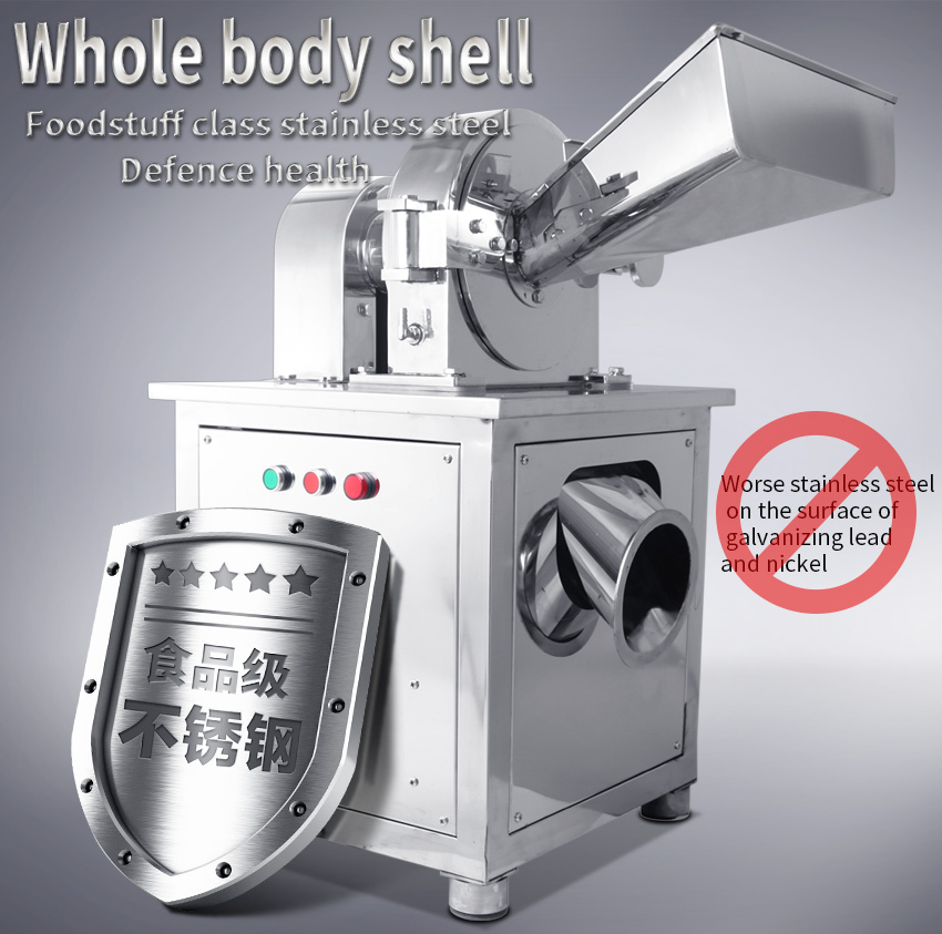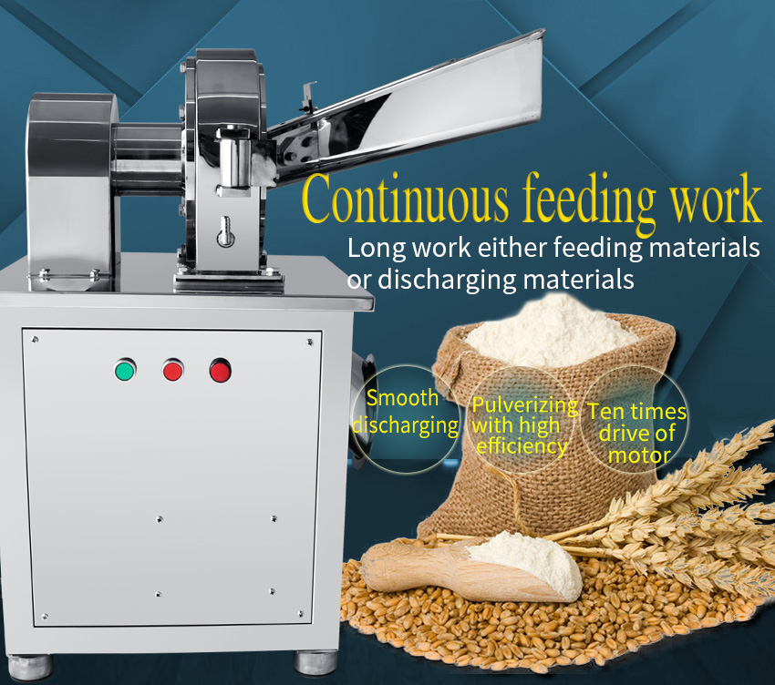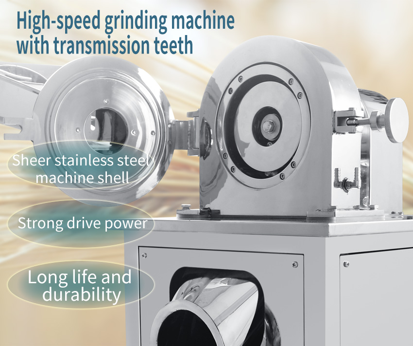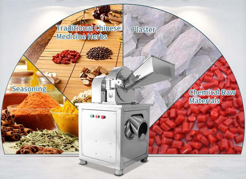 High efficiency grinding machine is mainly used in the fields of pharmaceuticals,chemical industries,foodstuff etc.It is mainly used to grind chemical materials,Chinese medicine herbs containing timber root,tree leaves,blocks materials,kinds of grains with low oil,whole grains and other rigid & crispy materials,such as ginger,chilli,sugar,salt,pepper,oil wheat,bean,star anise,cinnamon,dried vegetables etc.When grinding materials with middle-low rigidity,the fineness keeps between 10 mesh and 120 mesh.The advantages for this machine as follows:high yield,fine granularity,low noise,low energy consumption,simple maintenance,convenientinstallation etc.