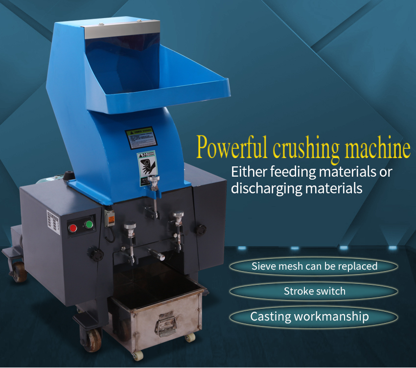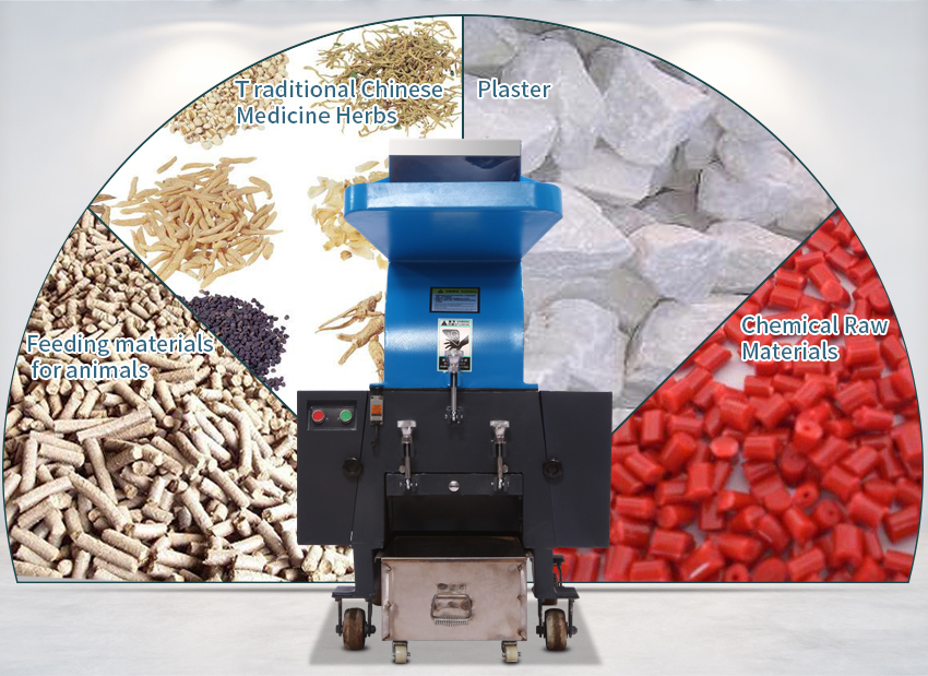 Stainless steel crushing machines are suitable for crushing traditional Chinese medicine herbs,chemical materials,ore with low rigidity,polystyrene,polypropylene,nylon,industrial plastic,abandoned or defected objects of polychlorinated foam soft plastic,injection sprays.The matching sieve hole board can be replaced and distance between knives blades can be adjusted.Meanwhile,the machine can crush kinds of abandoned plastic products such as blowing moulding films,film extension,thin tablets,thin boards etc.