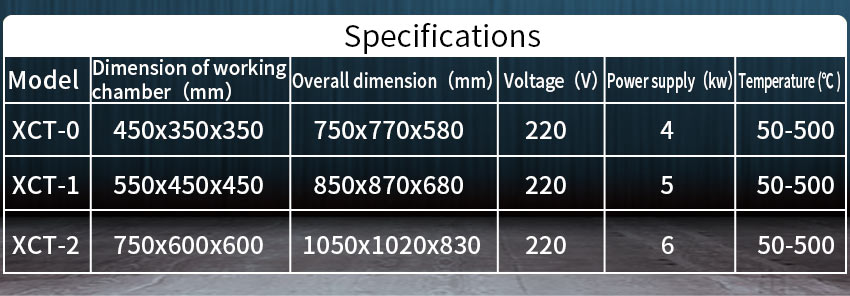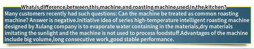 Type XCT high-temperature roasting machine equips with air blast motor and thermostat device.The machine is widely used for drying,thermal treatment and increasing temperature of testing products in the unit laboratory of agricultural production,science & research,hospital sanitation etc.But the machine is not suitable for volatile,inflammable objects etc in order to avoid causing explosion.