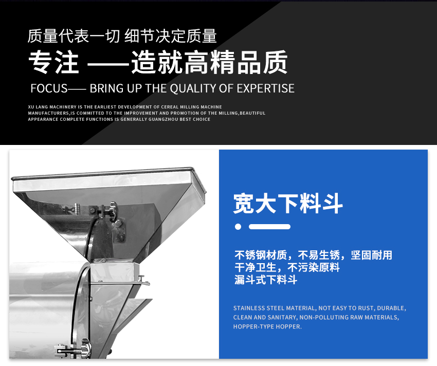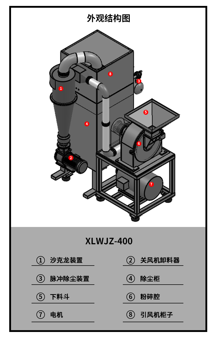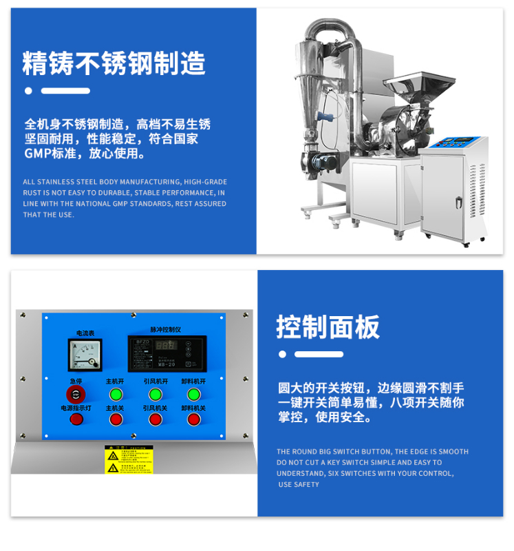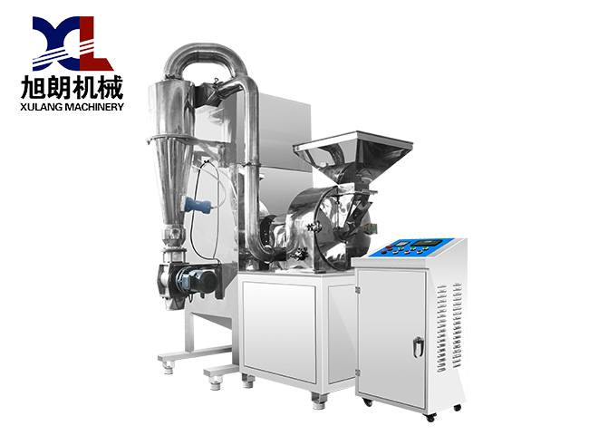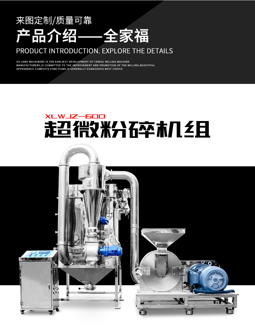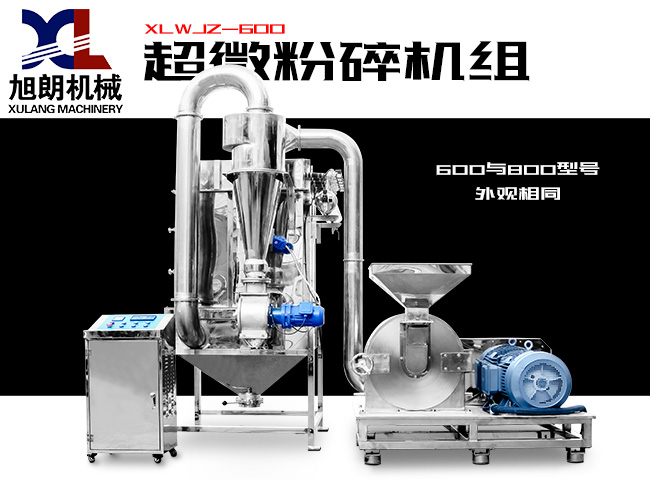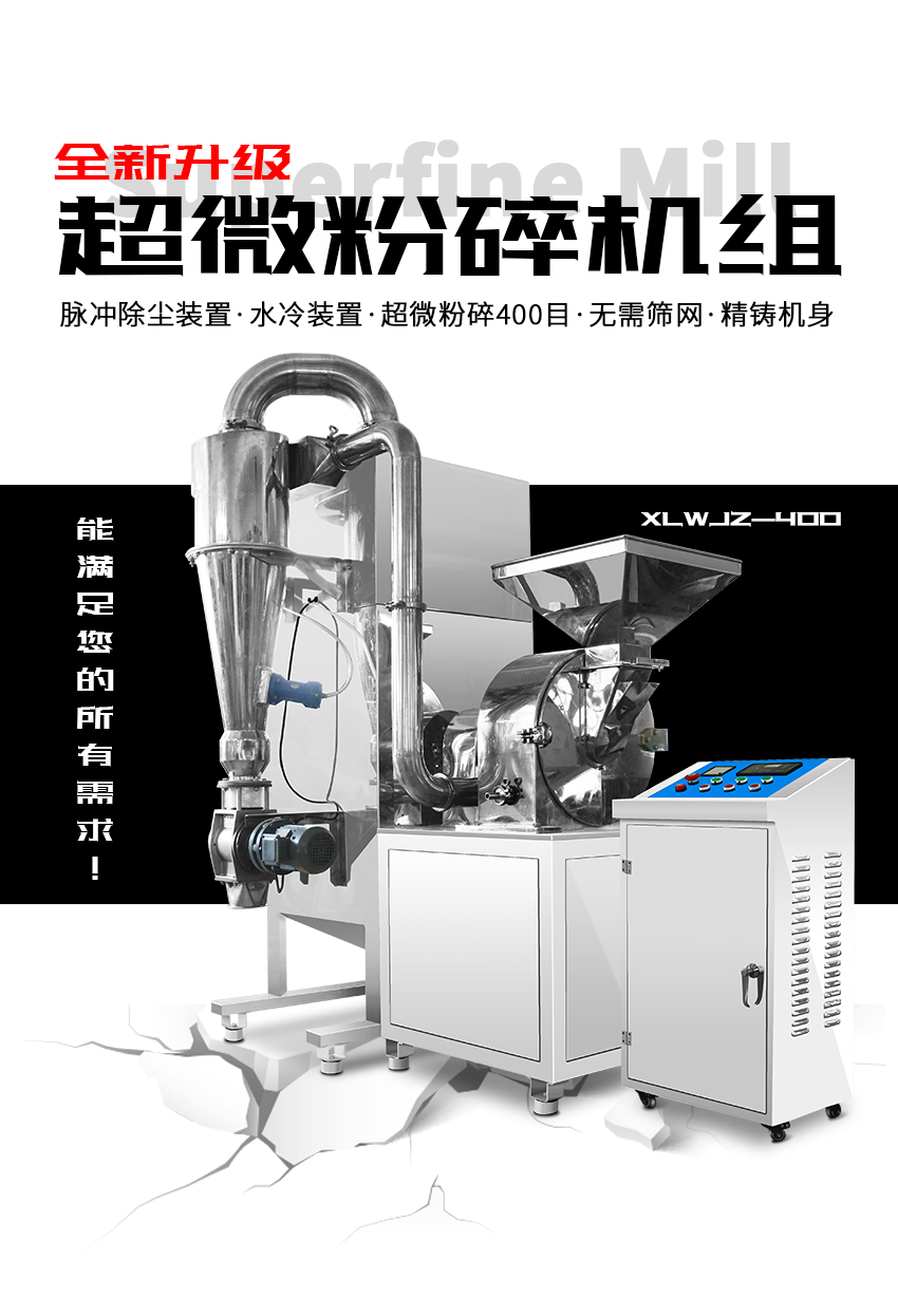 新超微粉碎機(jī)組由加料斗、分級(jí)輪、粉碎刀片、齒盤(pán)、粉碎電機(jī)、出料口、風(fēng)葉、集料箱、吸塵處等部分組成。物料由加料斗進(jìn)入粉碎室,通過(guò)高速旋轉(zhuǎn)的刀片進(jìn)行粉碎,調(diào)節(jié)分級(jí)輪與分級(jí)盤(pán)的距離來(lái)達(dá)到所要求的粉碎細(xì)度,高速旋轉(zhuǎn)的風(fēng)葉把達(dá)到要求的物料從粉碎室引到旋風(fēng)分離器出料,沒(méi)有達(dá)到要求的物料繼續(xù)在粉碎室中粉碎。旋風(fēng)分離器的粉塵由除塵箱收集后回收利用。該機(jī)組按“GMP”標(biāo)準(zhǔn)設(shè)計(jì),結(jié)構(gòu)簡(jiǎn)單、操作清理方便、噪音小、產(chǎn)量高、機(jī)器全部用優(yōu)質(zhì)不銹鋼材料制造、粉碎過(guò)程中無(wú)粉塵飛揚(yáng)。