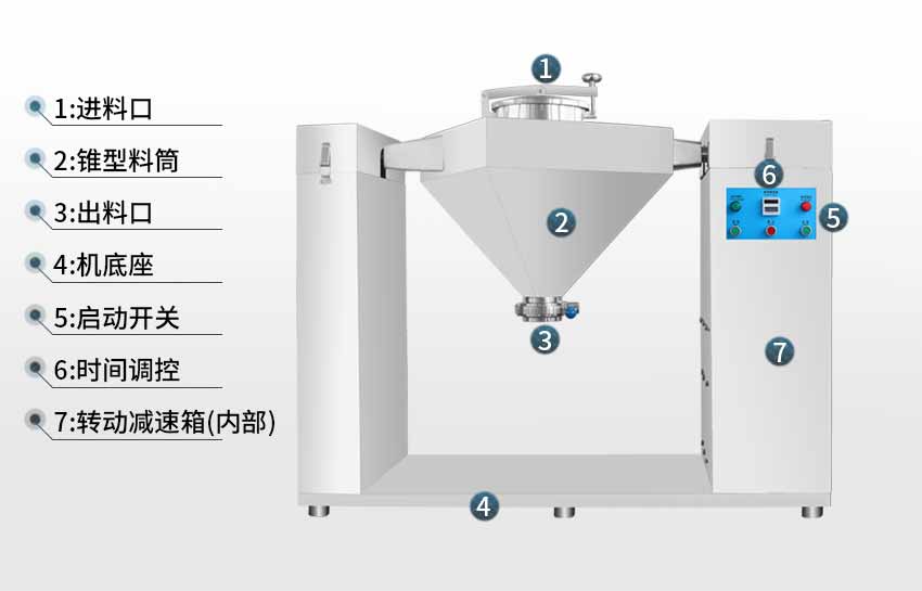 4、物料混合好后如出料口不在您所需位置,那么就要就要進(jìn)行點(diǎn)動(dòng),直到出料口停在您所需位置。