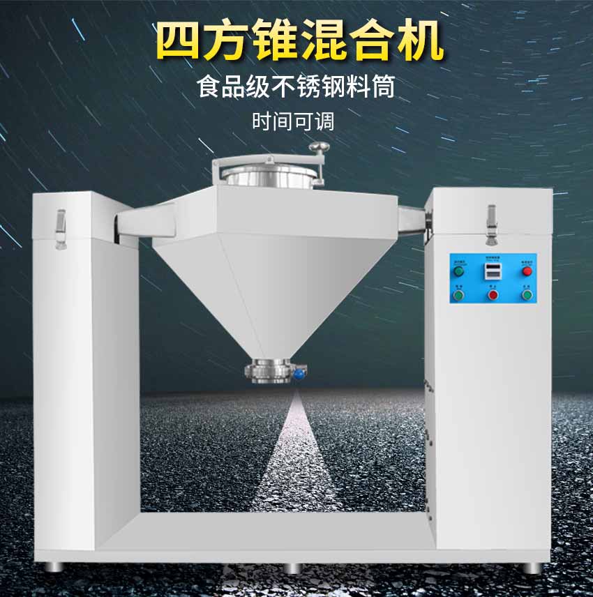 四方錐混合機(jī)適用于制藥、化工、食品的干粉狀、顆粒裝物料的混合。該機(jī)混料筒結(jié)構(gòu)簡(jiǎn)單,混合均勻,效率高,不積料,通過(guò)往復(fù)運(yùn)動(dòng),物料作流動(dòng)性翻轉(zhuǎn),使之達(dá)到均勻混合的目的,混合后均勻度達(dá)98%以上。整機(jī)結(jié)構(gòu)簡(jiǎn)單,操作容易。外表面和物料接觸部分均采用優(yōu)質(zhì)304不銹鋼制造,造型美觀,維護(hù)、清洗方便。