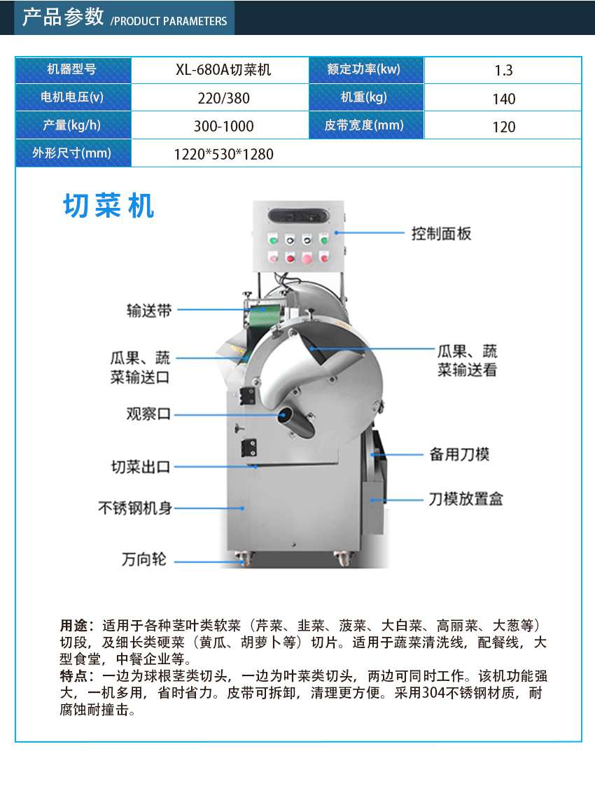 不銹鋼多功能切菜機主要用于硬、軟各種根、莖、葉類蔬菜的絲、丁、片狀的切制加工。