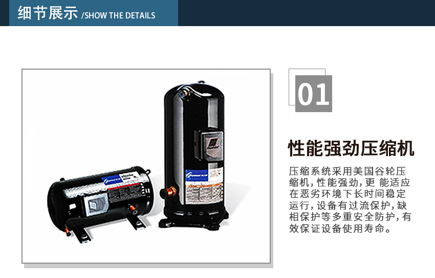 高溫?zé)岜煤娓蓹C組,主要有翅片式蒸發(fā)器(外機)、壓縮機、翅片冷凝器(內(nèi)機)和膨脹閥四部分組成,通過讓冷媒不斷完成蒸發(fā)(吸取室外環(huán)境中的熱量)→壓縮→冷凝(在室內(nèi)烘干房中放出熱量)→節(jié)流→再蒸發(fā)的熱力循環(huán)過程,從而將外部低溫環(huán)境里的熱量轉(zhuǎn)移到烘干房中,冷媒在壓縮機的作用下在系統(tǒng)內(nèi)循環(huán)流動。